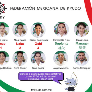 México asiste al Torneo Internacional de Kyudo en Japón que se realiza cada 4 años, debido a la pandemia la última edición fué en el 2018 en Tokio. Este año el seminario /shinsa se llevó a cabo en la ciudad nipona de Nagoya y con alegría de nuevo México participa en este importante evento con dos equipos representativos conformados por kyudoka de las siguientes asociaciones: